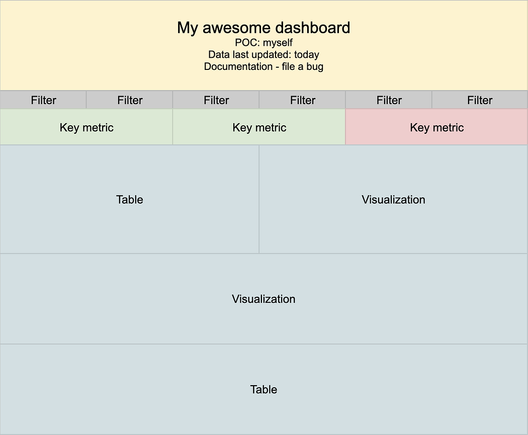 • Who will be the audience of this dashboard? Tailor the experience to your audience. For example, if your audience isn’t familiar with the side of the business you are reporting on — you should add more context to the data. If they don’t know how to use filters — you should not add filters. If they’re mainly using their mobile device — make sure it’s mobile-friendly. Recruit a few beta testers that would be representative of your audience — they can give you feedback on any mockups and the final product.